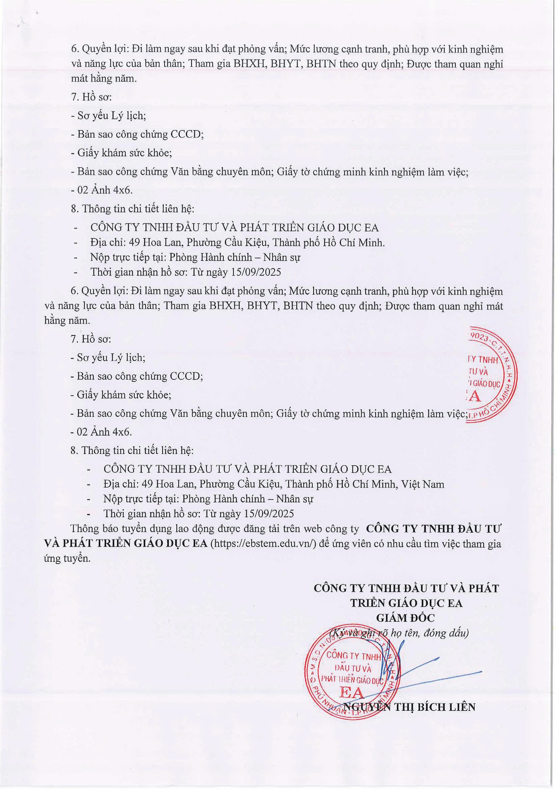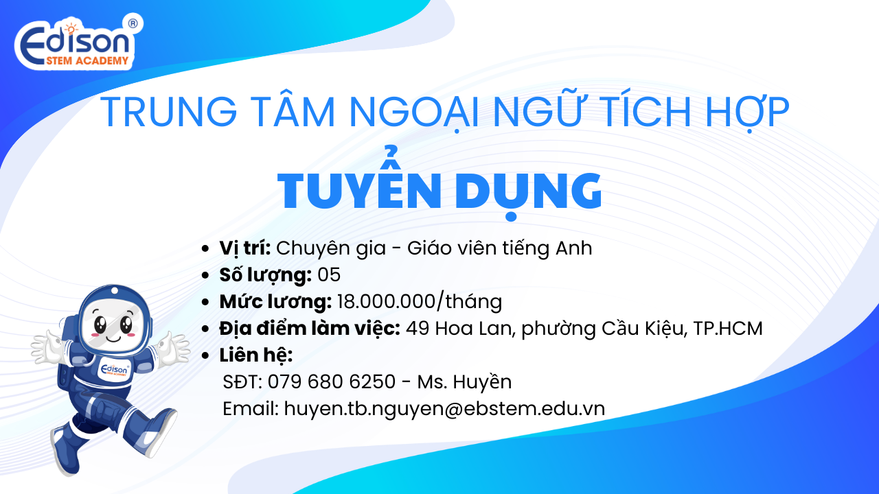 - Ứng tuyển: Gửi CV ứng tuyển về email - huyen.tb.nguyen@ebstem.edu.vn